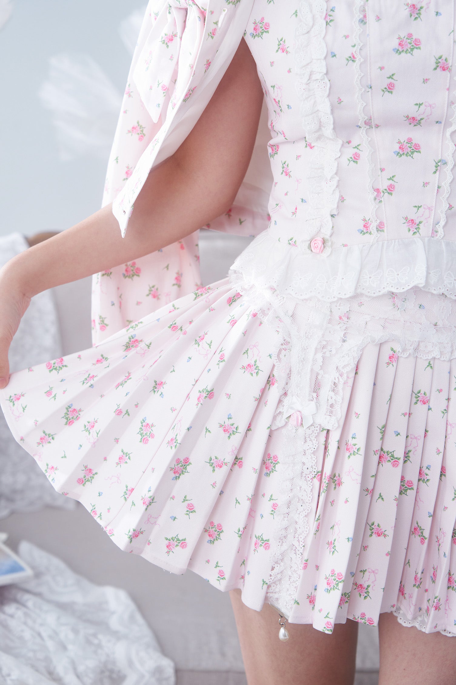 big bows and small florals, full of coquette and girly details, made with comfortable natural materials~